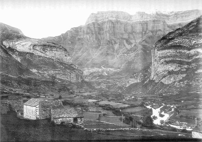 de la vallée du rio Ara. Au fond, les falaises de Mondarruego (Coll.