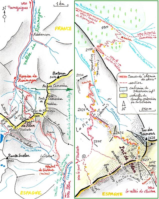 surtout sur le versant espagnol du port de Plan, les vestiges d'un chemin