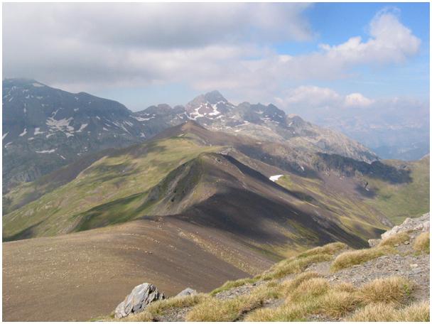 monte à gauche vers le massif des Posets et des pics d'Eristé,