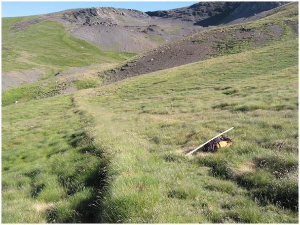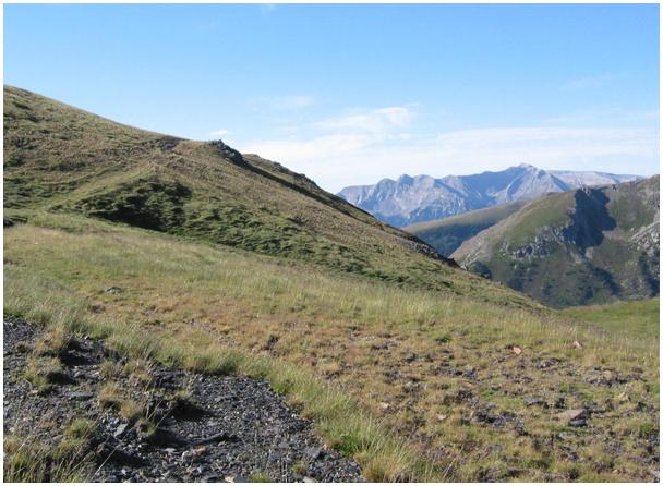 m). De l'épaulement descend une croupe herbeuse sur laquelle on devine