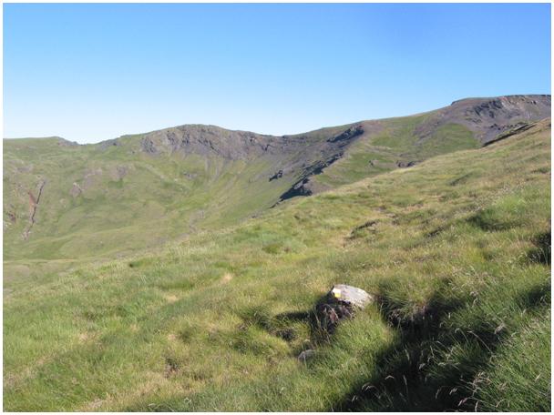 A droite, le contrefort mi-herbeux, mi-boisé