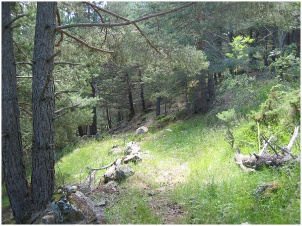 et une croupe occupée par les ruines d'une cabane, la cabane des