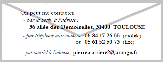 : 05 61 49 47 21 ; e-mail alain.pozo@laposte.net