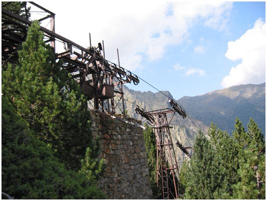 aérien qui transportait le minerai des mines du pic Liena de l'Hôpital