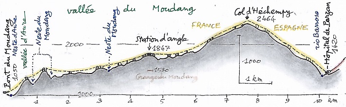 au col d'Héchempy, puis descendant dans la vallée du Moudang.