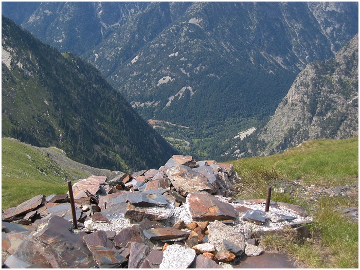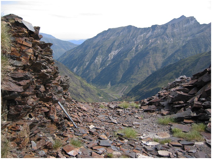 minerai sont masqués par l'arête est du pic.Le reste descend