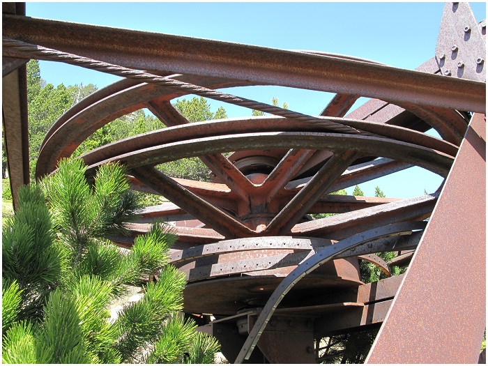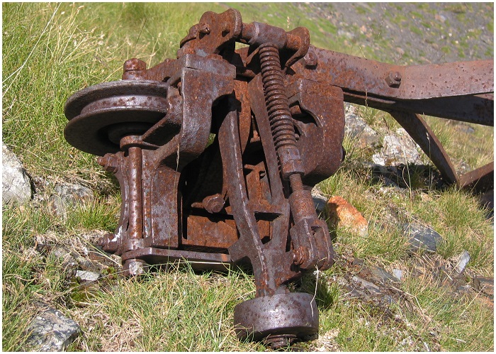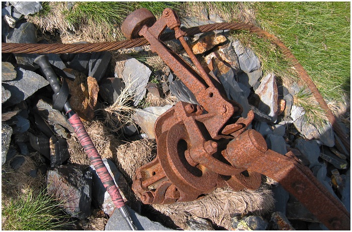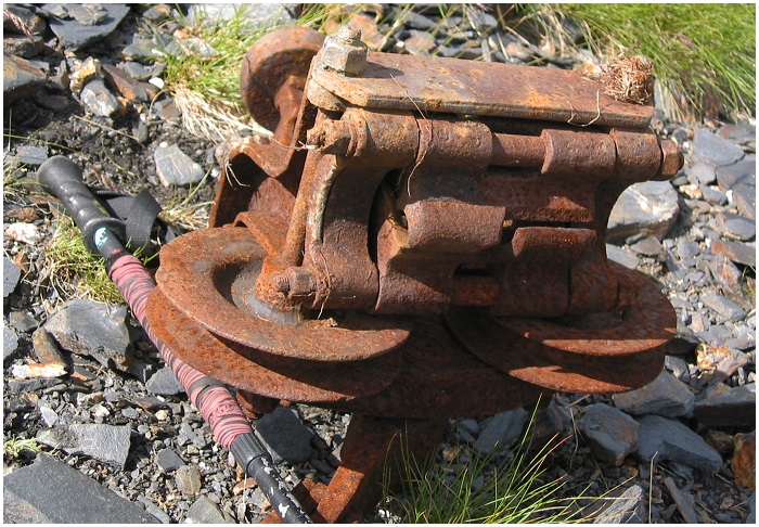 d'angle, qui a perdu l'un de ses deux trains de poulies et le câble