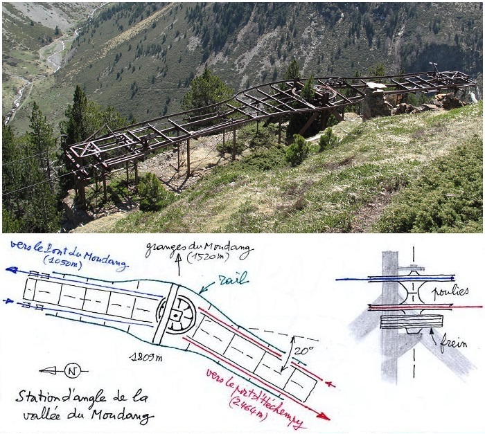 col) d'Héchempy., 2454 m. Le câble aérien franchit la