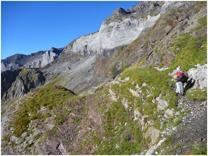 beau chemin, dit "chemin Luisa", balisé, qui descend du col