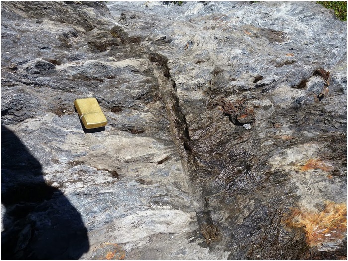 souligne la base de la couche d'ampélite. Débordant celle-ci