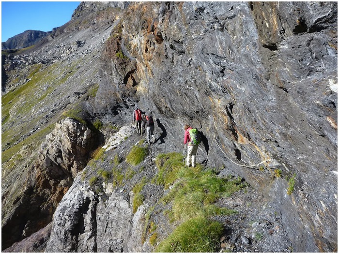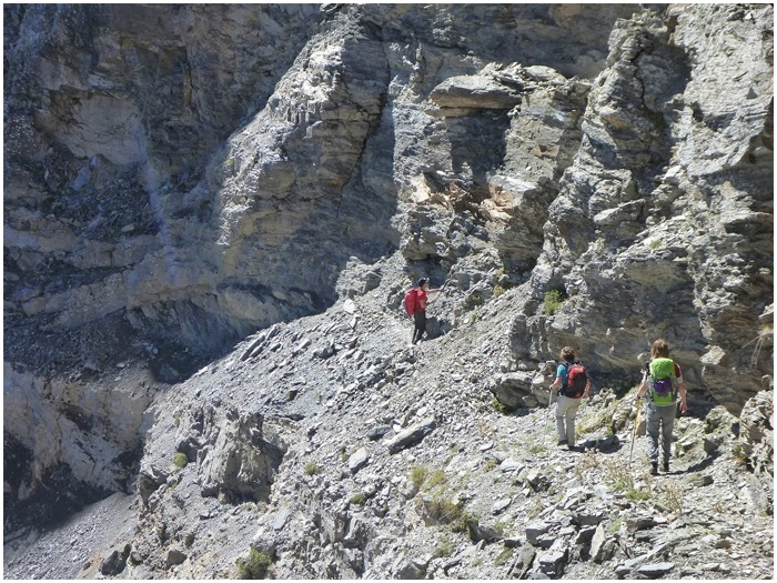 la région de Barroude, la traversée du cirque par la corniche,
