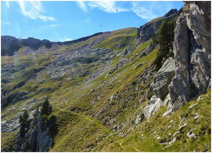 le plateau de Liena, les mines du pic Liena avec les vestiges du câble