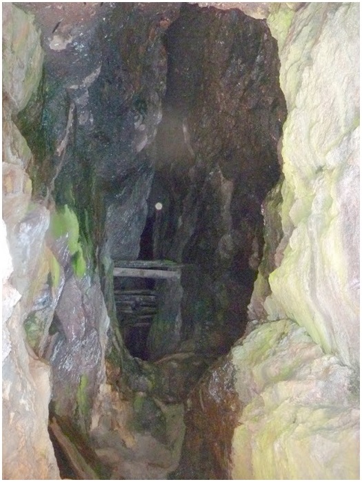 d'environ 1 mètre elle forme une vire qui dans la plus grande partie